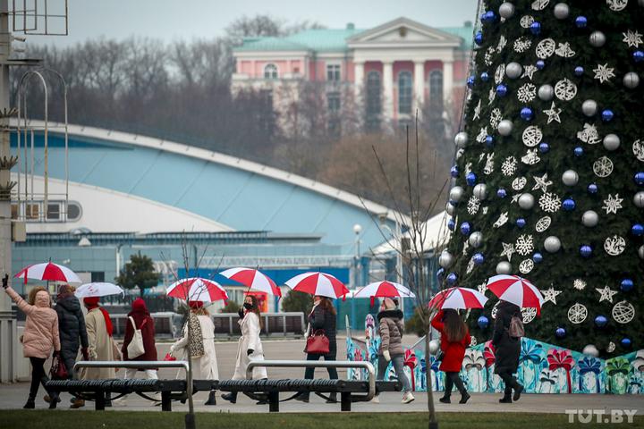 Girls with white-red-white umbrellas and under the slogan “I walk” walked around Minsk again. The participants of the walks are few in number, but their umbrellas can be seen in the center of Minsk every week.
