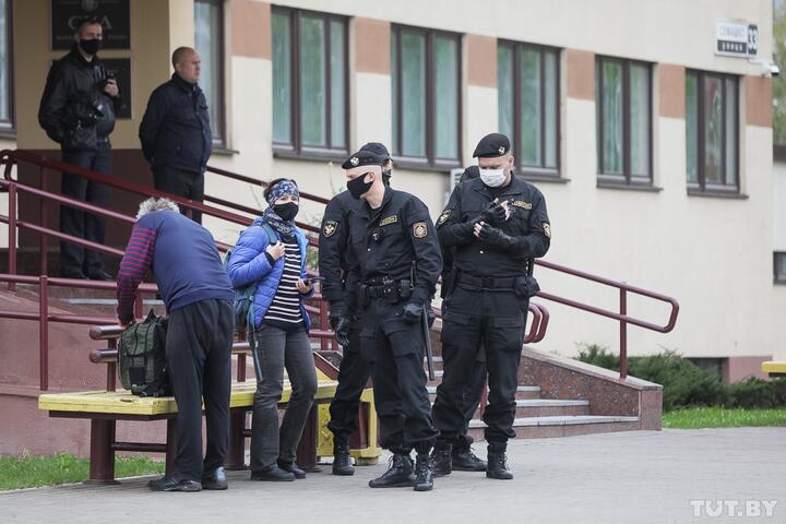 More than 200 Belarusians gathered in front of the court building. Only relatives were allowed to be present at the trial. Representatives of the state media were also let into the courtroom. A police officer asked everyone to leave, but the supporters said that they would stand until the hearing ended.