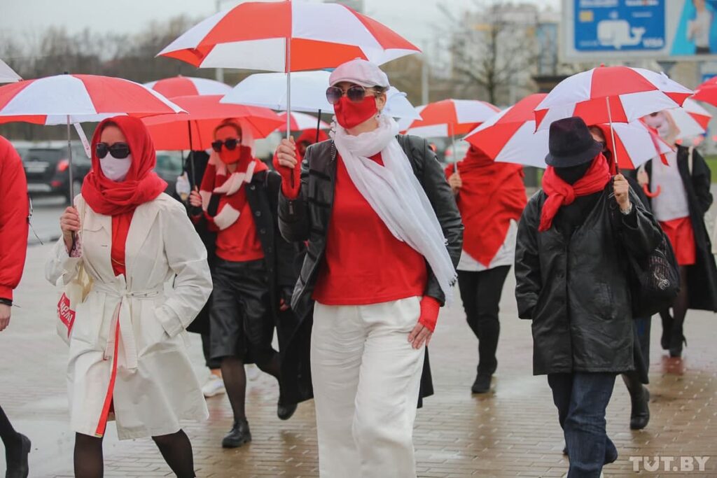 And in the afternoon, a group of young women went for a walk carrying white-red-white umbrellas again. They have been taking such walks for more than four months even though it attracts attention of the security forces and ends up with detentions.