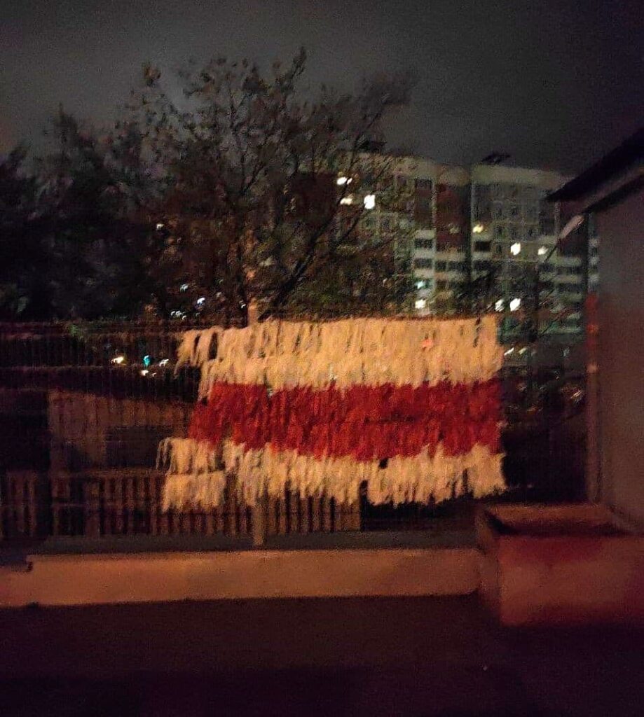On one of the most guarded squares in Minsk, there appeared again the mural with the DJs, and next to it there was a white-red-white flag made from ribbons. Images of DJs Kiryl Halanau and Ulad Sakalouski, who played Viktor Tsoi’s song “Peremen” (Changes) at an official event last summer, have become a symbol of the Square of Changes. Stsiapan Latypau went to prison for defending the mural, and Raman Bandarenka died here. The mural with the DJs was painted over by lunchtime.