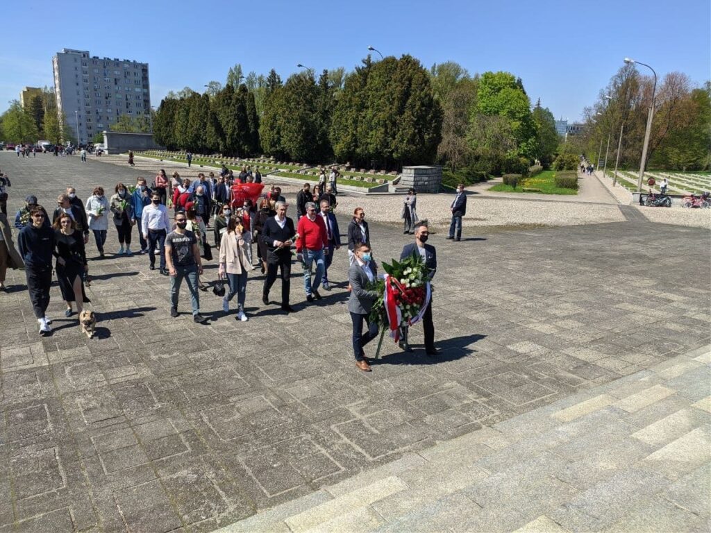 Meanwhile, officials held an official wreath-laying ceremony at the obelisk on Victory Square, and traditional festivities took place at the Sports Palace. The city center was partially blocked and ground floor shops were closed. On the eve of the event, minesweepers checked street lights and advertising stands for explosives. People who wanted to get to the event had to undergo bag checks and were patted down. Significantly fewer people participated in the festivities than in the pre-coronavirus years.