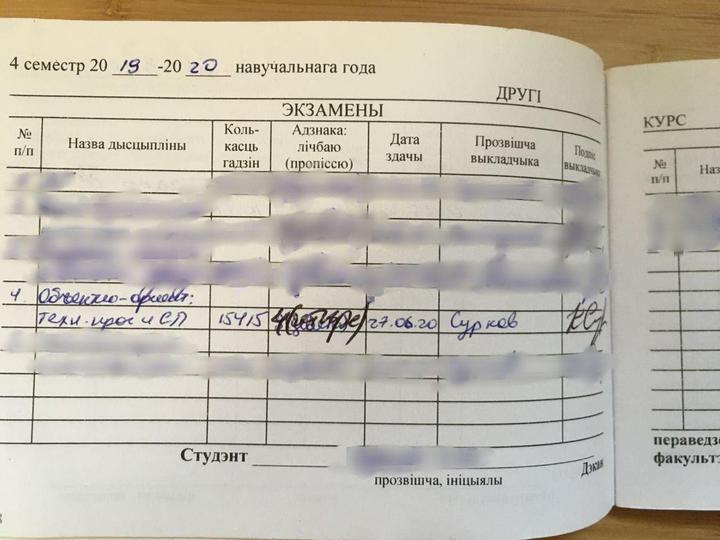 Over the weekend, the “Peaceful BSUIR” Telegram channel published a photo of a student’s examination record book, in which a grade of ten [the highest grade in Belarus – Translator’s note] had been changed in another pen to a four. The authors of this post claim that such a situation is not an isolated one – the whole group was affected. According to the students, the lecturer had “changed his mind” and refused to give them good grades due to the political views of his students. TUT.BY listened to the students’ opinion and learned about the university’s position concerning this situation.