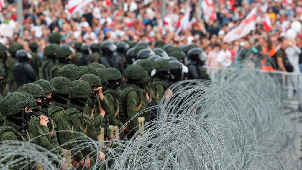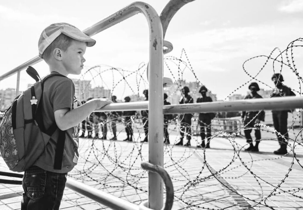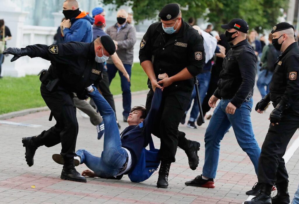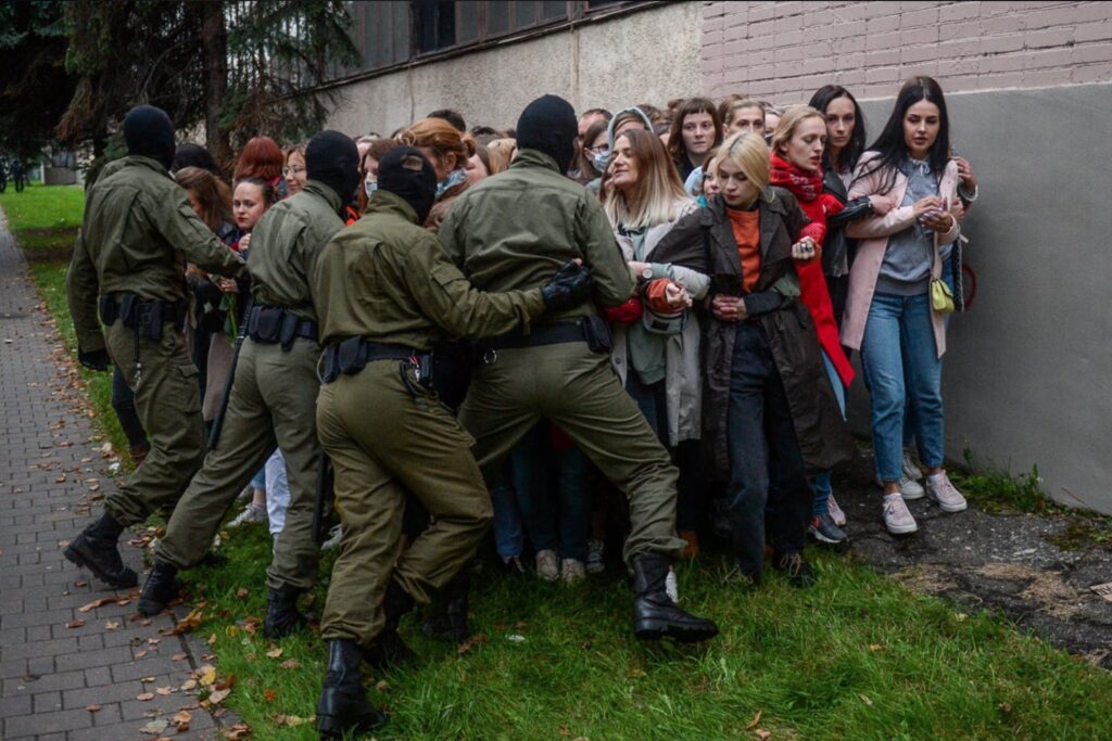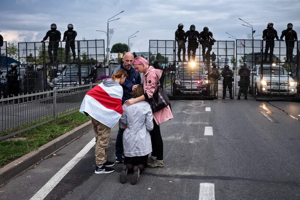Some scenes began to resemble the Nazi occupation in every detail: people on their knees with their hands raised up against the wall; barbed wire fences in the center of Minsk; peaceful citizens surrounded by men in uniform. Sometimes, the only difference is that unlike Lukashenko’s tormentors, the Nazis did not hide their faces.