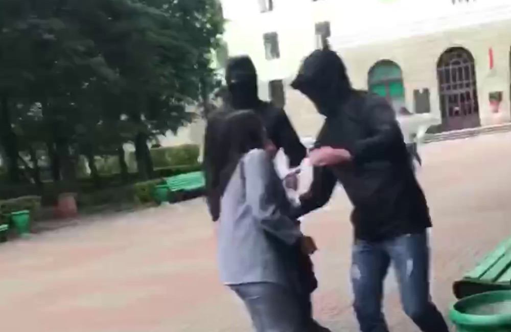 Zuvor wurde berichtet, dass unbekannte Personen in schwarzen Kleidern und Masken das Territorium der BNTU patrouillieren. Radio Svaboda veröffentlichte ein Video, das zeigt wie zwei unbekannte Männer versuchen, ein Mädchen festzunehmen.