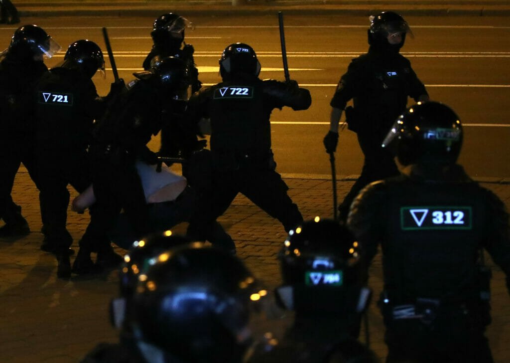 Después llegaron los policías antidisturbios y empezaron a meter a la gente en los vehículos de traslado de prisioneros sin cuidado ninguno, con brutalidad, para llevarla a Zhodino. Empezaron a poner a la gente en el suelo, boca abajo, y se la llevaron así mismo».