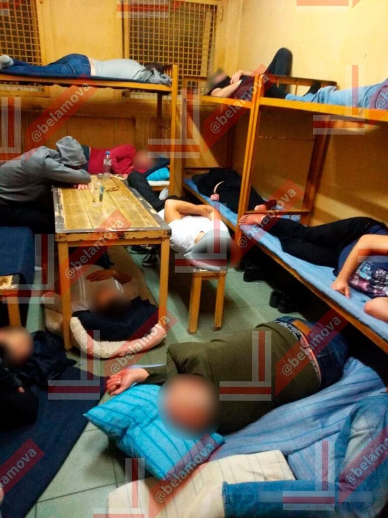 El autor de estas imágenes las ha comentado: «Tras la llegada de una nueva oleada de detenidos, todos fueron «recibidos» en el pasillo y después nos distribuían entre las celdas. En ese momento, reinaba el caos, más de 60 personas estaban paradas junto a la pared, los antidisturbios estaban mirando sus cuentas de Telegram en los teléfonos, y nuestras pruebas materiales simplemente estaba tiradas en el suelo. En ese momento, me las arreglé para recoger discretamente mi teléfono y mis llaves. Ni siquiera lograron encontrar el teléfono en la celda durante los 15 días que estuve allí».