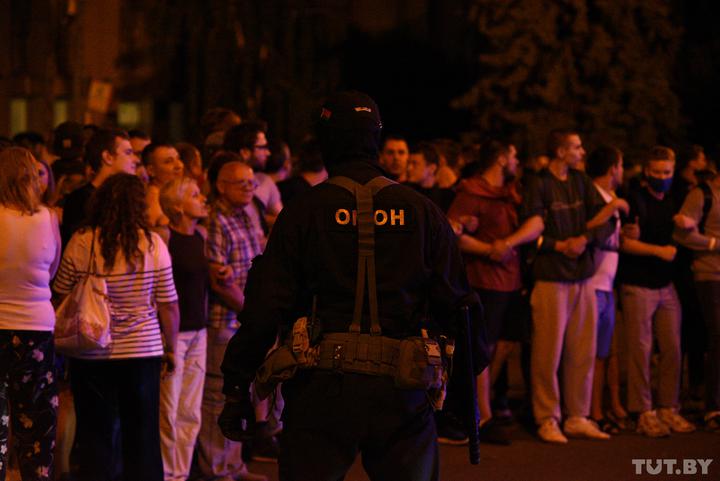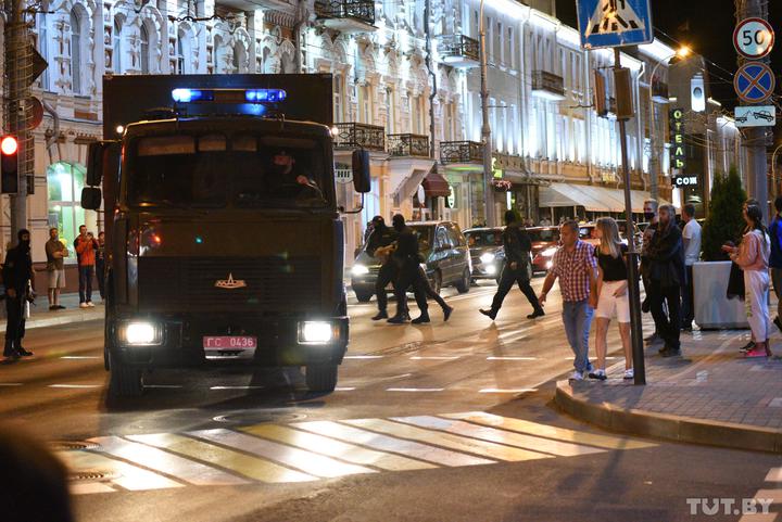 Later that evening on 9 August, together with his colleagues from the Savetski District Department of Homel Internal Affairs, he was sent to the city center to reinforce the riot police forces already working there.