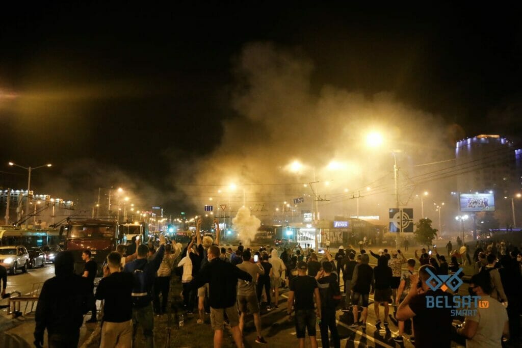 Selon le ministère de l’Intérieur, lors de l’affrontement avec les forces de l’ordre arrivées dans le but d’évacuer la place, l’un des manifestants a tenté de lancer un engin explosif non identifié en direction de celles-ci. Selon des témoins, avec lesquels le correspondant de ,,Belsat,, s’est entretenu, l’homme aurait pu être tué par une grenade.