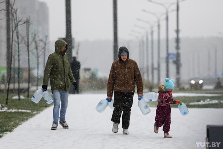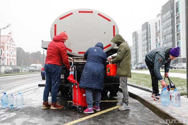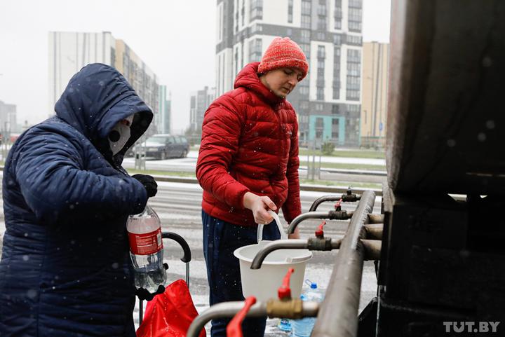 Cela fait déjà trois jours que l’eau courante a été coupée dans le quartier Novaïa Baravaïa de Minsk. Aujourd’hui, il n’y a pas école à cause de cela, et les habitants transportent de l’eau dans des bouteilles et des seaux. Hier, le fournisseur d’eau Minskvodakanal a déclaré que quelqu’un aurait pu délibérément endommager la vanne du système d’eau. Aujourd’hui, on dit que la panne a été réglée, mais l’approvisionnement du quartier en eau n’a pas encore été rétabli ; on dit que la qualité de l’eau est maintenant en train d’être contrôlée par le service sanitaire de la municipalité. De plus, le chauffage central a été coupé dans certains immeubles résidentiels ce matin. Les habitants considèrent tout cela comme une vengeance pour l’esprit contestataire des habitants du quartier. TUT.BY s’est penché sur ce qui se passe à Novaïa Baravaïa.