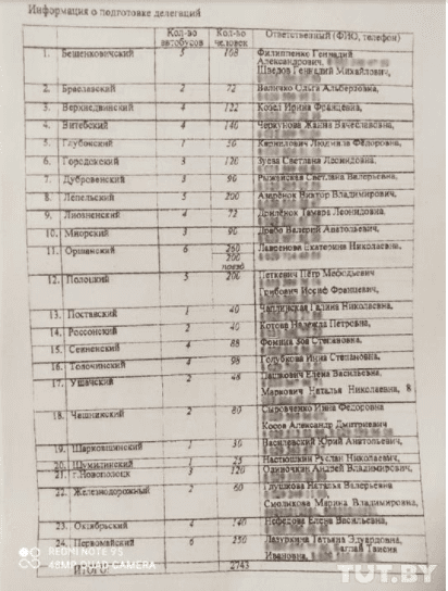One of the readers sent a photo, presumably, of a list of how many people are going to come from Vitsebsk region – more than 2.7 thousand people.