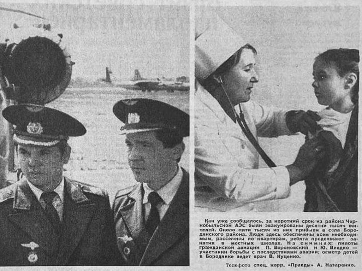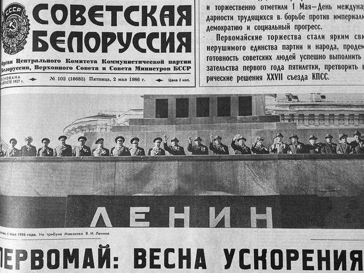 The first brief official announcement about the state of emergency was transmitted by the Soviet news agency TASS on 28 April 1986. Then, it was repeated during the main evening newscast show Vremya. But even on 7 May, when an article about the Chernobyl accident was published in the Pravda newspaper (its circulation was over 10 million copies), the information about the disaster was not printed on the front page. In that issue, there were reports on such “urgent” news like the CIA terrorist attacks on the people of Nicaragua, the Afghan counter-revolution committing a new barbaric crime against civilians, and an American warplane dropping a training round on a residential building in a Belgian city. The newspaper did not print a photo of the Chernobyl nuclear power plant. But it was reported that as a result of the accident at the station, two people had died, more than a hundred had gotten radiation poisoning, and 204 people had been hospitalized with radiation sickness. No clear instructions were given to the people on how they should act to protect themselves. By that time, May Day demonstrations involving thousands of people had already taken place across the country. The ceremonial events were not canceled and the employees of entire factories and educational institutions were in attendance.