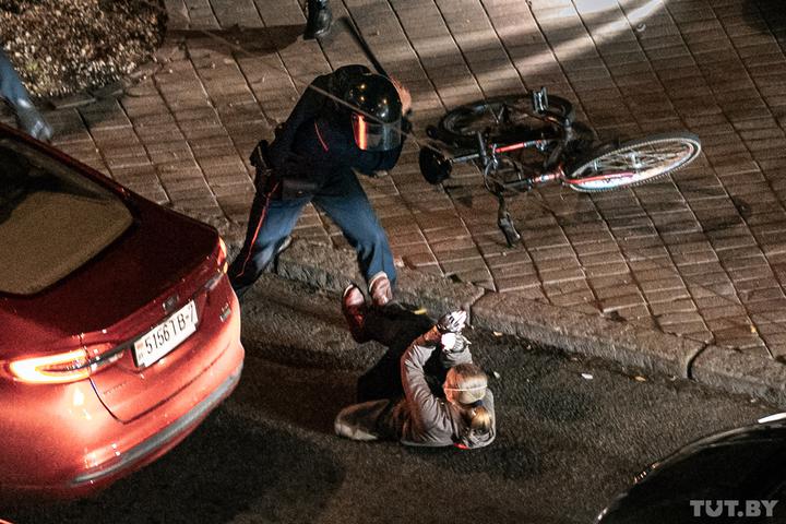 Le ragazze che camminavano lungo Corso di Pobediteley in abiti bianco-rosso-bianchi sono state arrestate.