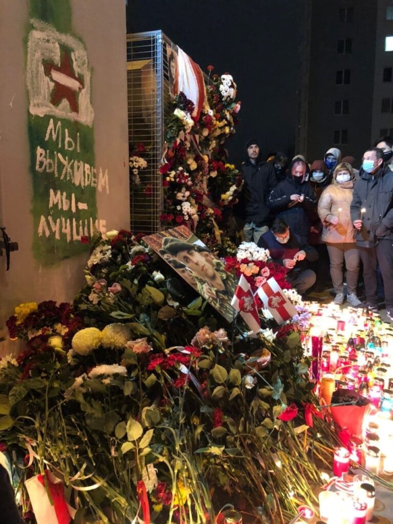 La sera sulla Piazza dei Cambiamenti, così come in molti altri cortili e strade in tutto il paese, si è radunata la gente per onorare la memoria del giovane. Migliaia di persone commossi portavano fiori ai memoriali spontanei, accendevano lampade e candele nelle finestre delle case in memoria della nuova vittima del regime disumano di Alexander Lukashenko.