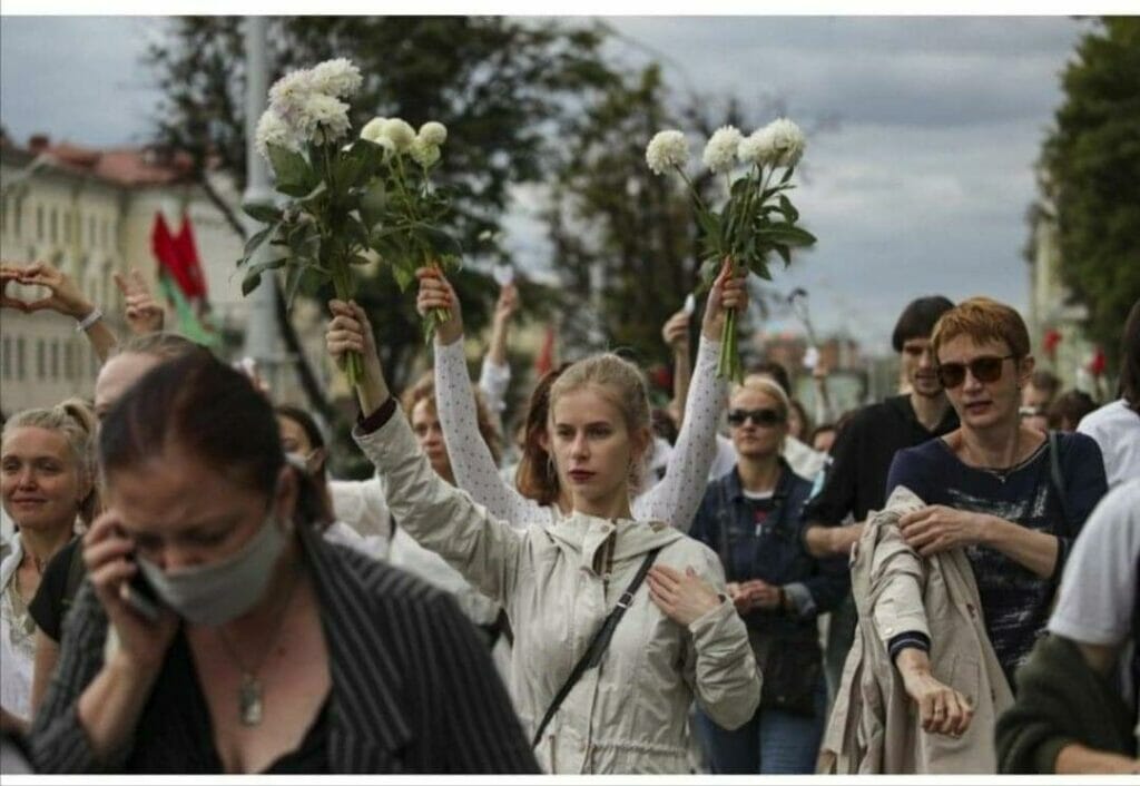 Molte donne bielorusse sono scese in Piazza ieri. Camminavano in abiti bianchi, spesso con fiori o un poster in mano, con le scritte: «Sono una moglie e una madre, non colpirmi», o in silenzio si allineavano in una lunga catena. Alle proteste ha partecipato anche Margarita (25 anni). Ha paura durante la nostra conversazione telefonica e chiede di non includere il suo cognome nell’articolo – come tutte le altre donne con cui abbiamo parlato.