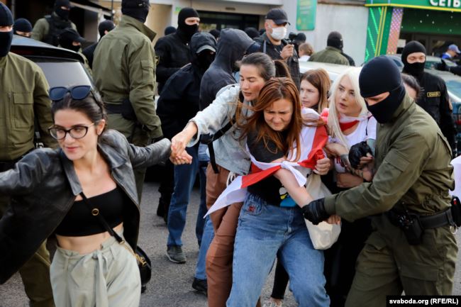“What’s happening in Minsk today is abuse of power. Beautiful and courageous women who protest lawfully and peacefully are being brutally arrested, in large numbers and by people without any identification. There are more than 240 Belarusian women already on the list of detainees, and there are even girls who were born in 2004.