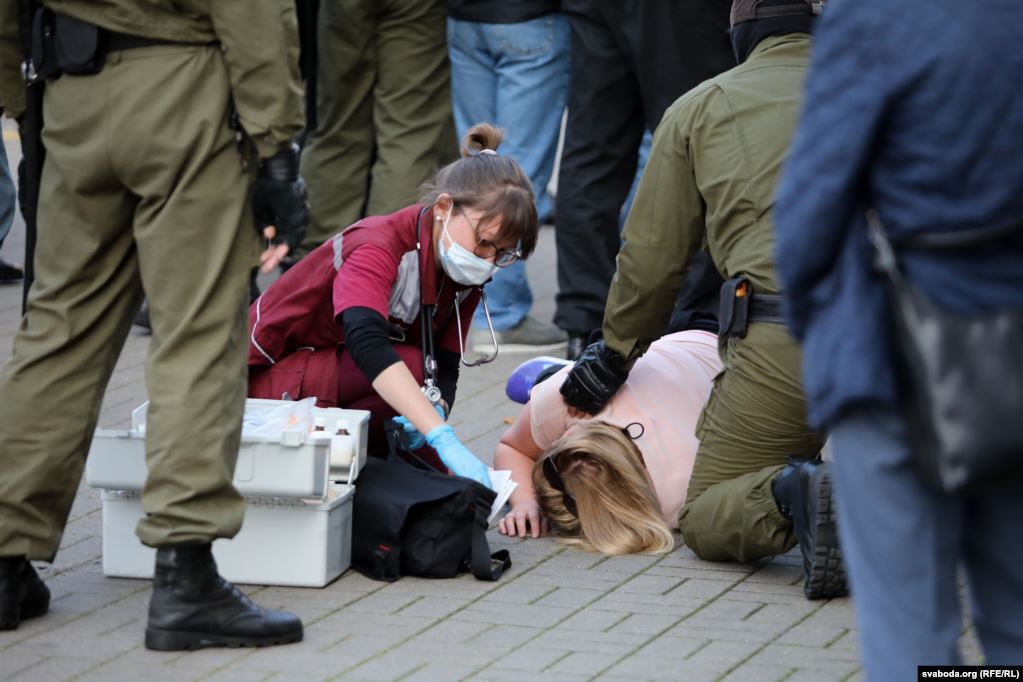 6:45 pm One of the detained women is reported to have left the Sovetskiy district police station in an ambulance. She walked to the ambulance by herself. The woman told TUT.BY journalists that one of the detainees is an Italian citizen.