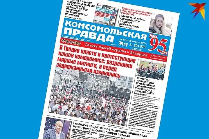 9:06 am “Komsomolskaya Pravda” in Belarus was unable to publish its latest issue on August 20 in the House of Printing. The printing Press was broken, – they say.