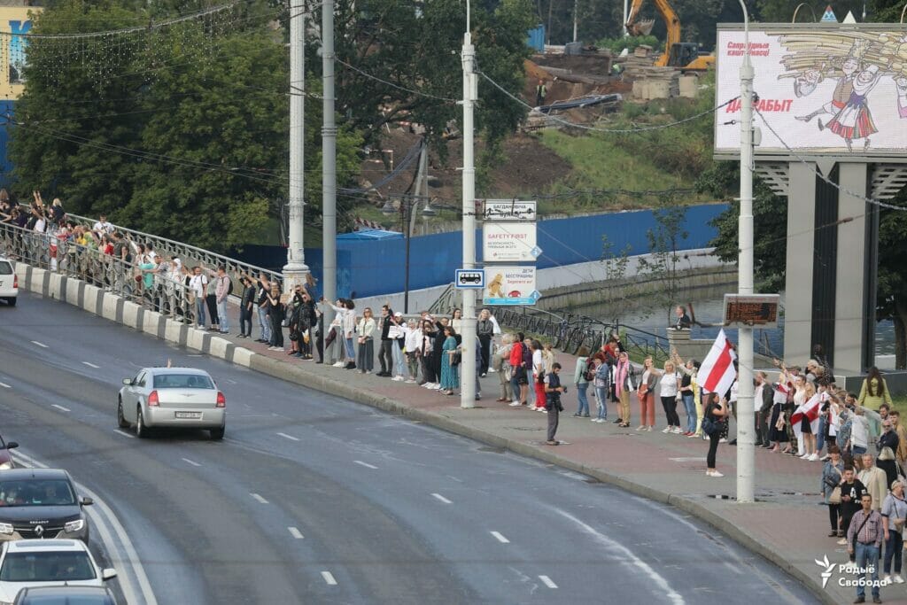 8:14 pm Protests continue both in Minsk and the provinces. Drivers are honking and blocking roads in downtown Minsk. Meanwhile, activists are forming a human chain from Kurapaty to Akrescina prison, where many of last week’s atrocities took place. Kurapaty is an important landmark in Belarusian history. Between 1937 and 1941, it was the site of mass executions of the Belarusian people by members of Stalin’s secret police (NKVD). People want to highlight the similarities between Stalin’s and Lukashenko’s crimes.