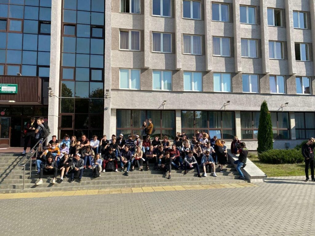 12:24 pm The Belarusian State University of Informatics and Radioelectronics students are holding a sitting protest in front of the university for the second day in a row.