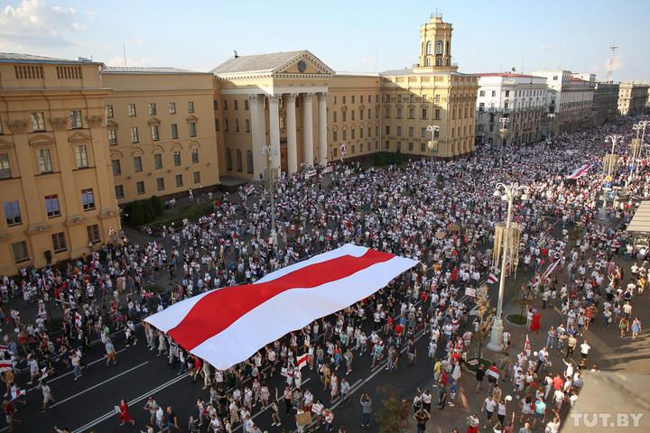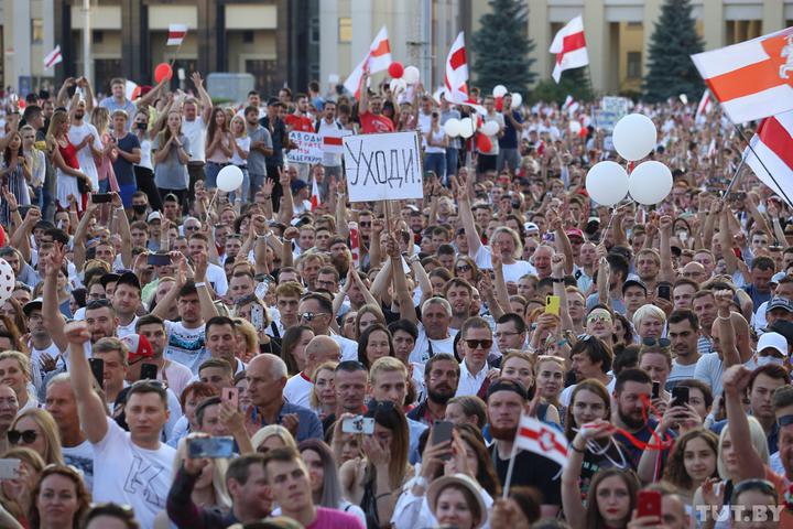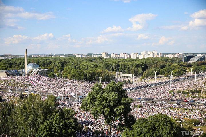 The record for the largest number of people gathered at a protest which was set back in the turbulent 90s was easily broken. By the reckoning of TUT.BY in this one location alone around 220,000 protestors gathered. By the reckoning of one expert at BBC, this estimate was lower at 127,000 people, but this expert also gave a lower number of attendees for the president’s rally at 12,000.