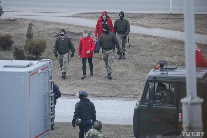 Gdy tylko popołudniu ludzie zaczęli wychodzić na ulice, rozpoczęły się aktywne zatrzymania wszystkich po kolei. Na przykład na jednym z nagrań wideo, na którym symbol protestu Nina Baginskaja udziela wywiadu, widać w kadrze, jak został brutalnie zatrzymany fotograf.