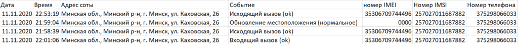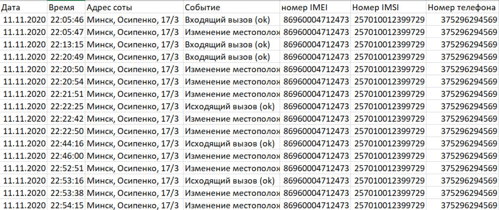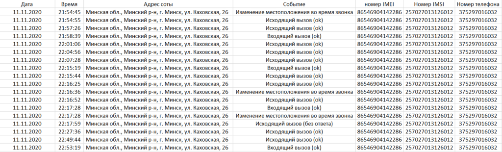 It should be noted that Babkou visited the City Clinical Hospital of Emergency Care on the night of 12.11.2020. This can be confirmed by the geolocation data of mobile phone numbers belonging to him: +375296683813 and +375336004986.