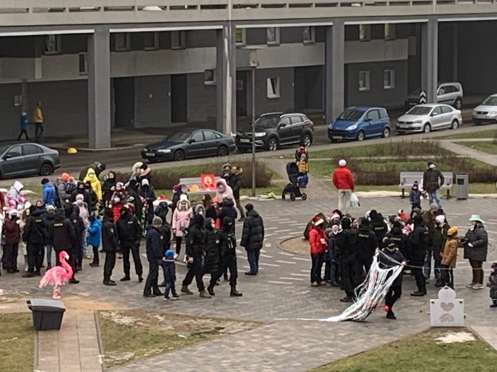 “The party began at 12, at 12.20 I went out with my son and ran into a group of riot police, and, I felt, there were more security officers than children,” says Volha, another Liabiazhy resident. “The girls removed the ribbons/decorations very quickly, they say, they wanted to detain one woman for those ribbons (they were multi-colored). After the police left, more people joined in, together with children. Maybe that’s why they decided to return in the evening.”