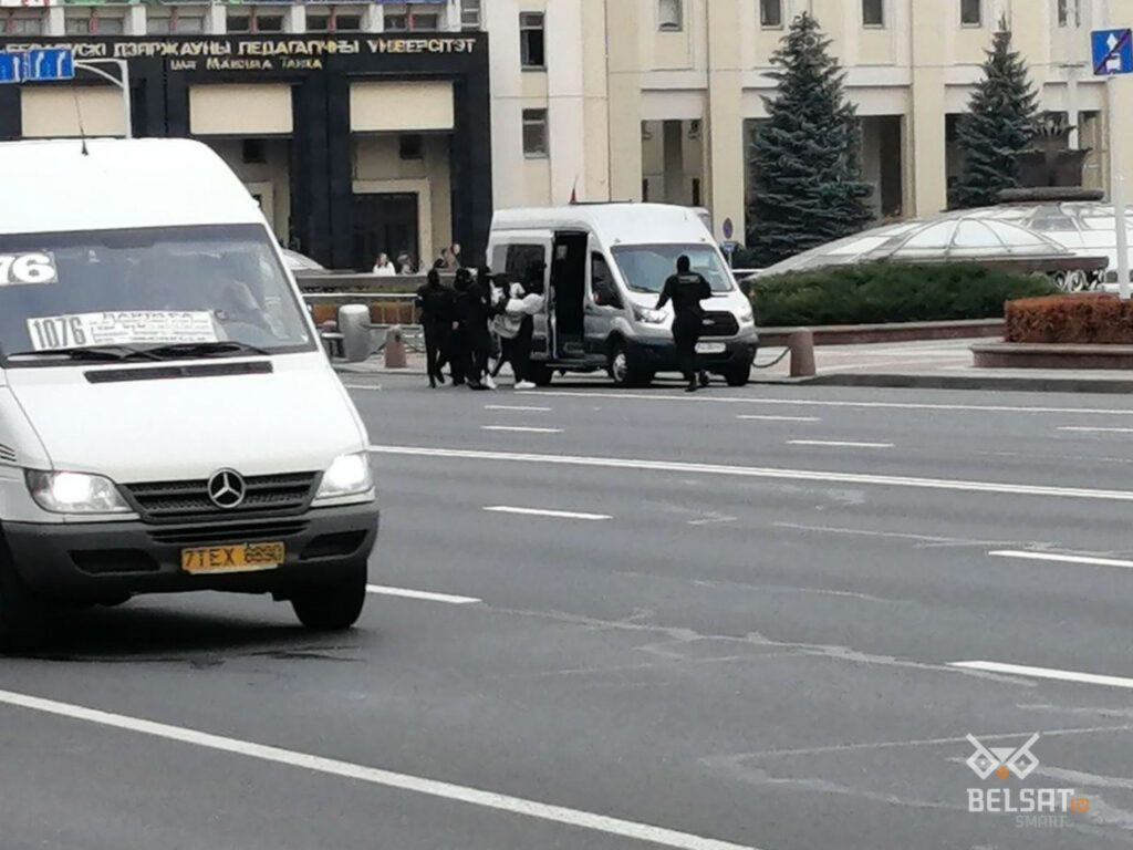 According to the students, four police vans were actually waiting for the students participating in the rally at the Belarusian State University. Four students were standing next to the entrance to the Stalitsa shopping center when they saw a plainclothes man heading towards them. When they went down to the underground pedestrian crossing, some riot police officers were already there waiting. The students were detained at Independence Square.