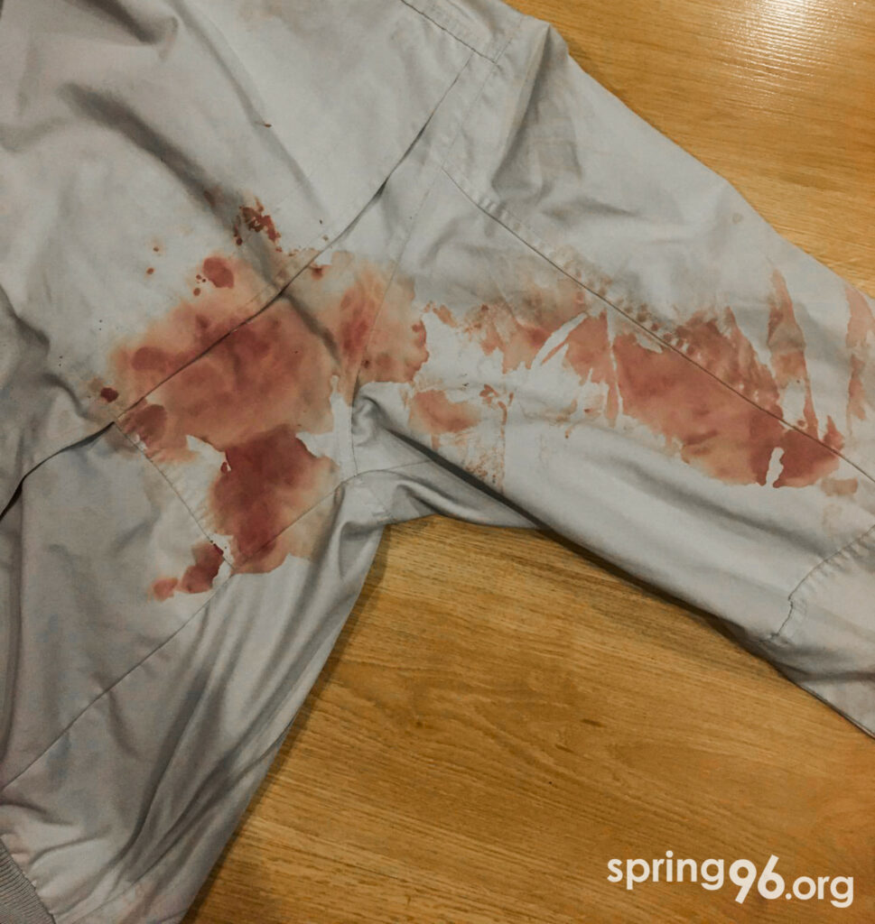 My backpack was snatched away from me – they just pulled the straps so hard that now it’s totally ruined. They were looking for something there, yet found nothing but water. Then the officers decided to have fun and started pouring water on us.